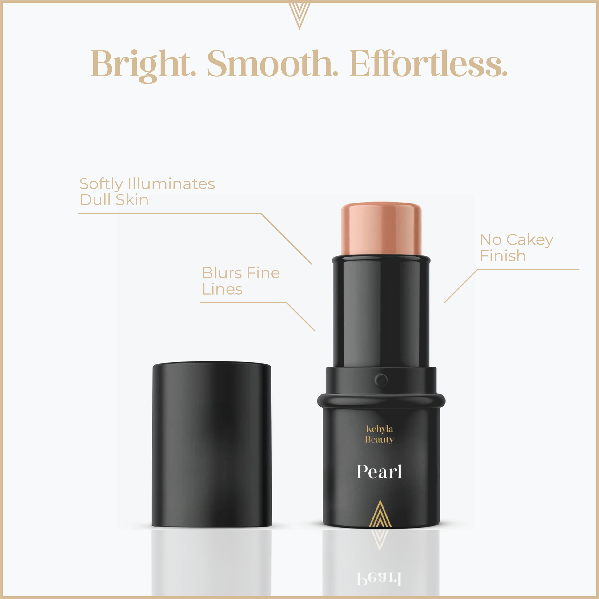 Our creamy formula glides onto the skin in seconds! The Pearl Highlighter adds an elegant, dewy shimmer anywhere you apply it.