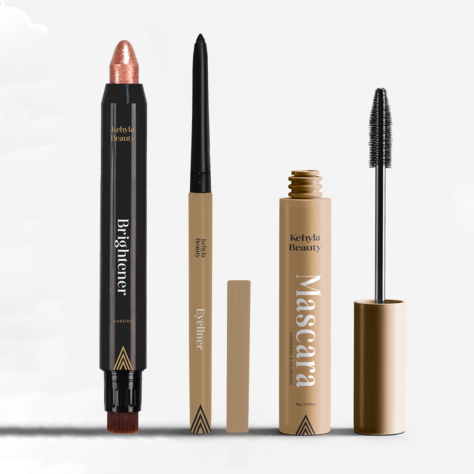 Unleash your most glamorous look with the Kehyla - Mega Glam Bundle. The Kehyla Beauty Mascara enhances volume and length, the Kehyla Beauty Eyeliner defines with rich, smudge-proof precision, and the Kehyla Beauty Eye Brightener illuminates and refreshes for a wide-awake, radiant finish.